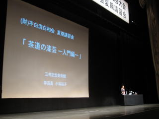 第2部は、三井記念美術館・学芸員・小林 祐子先生から「茶道の漆芸品 −入門編ー」の講演がありました。